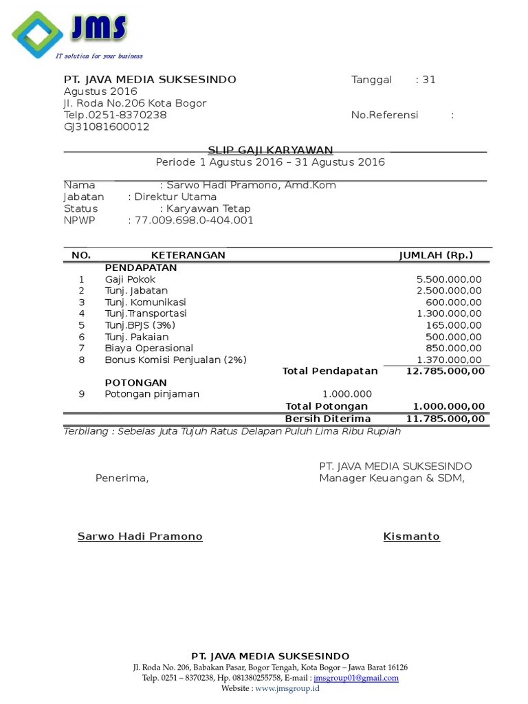 Jul 01, 2020 · contoh slip gaji untuk pegawai.
